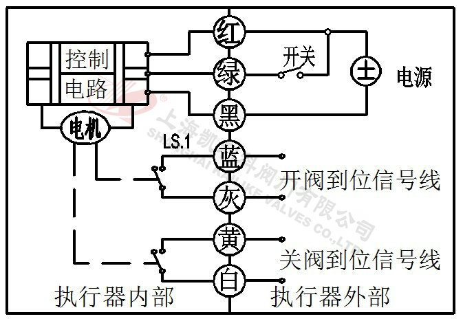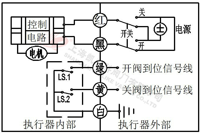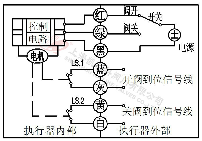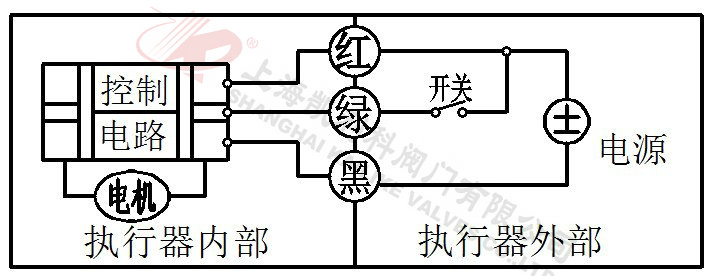 2、當綠線開關閉合,閥門關閉,到位后執行器內部自動斷電。